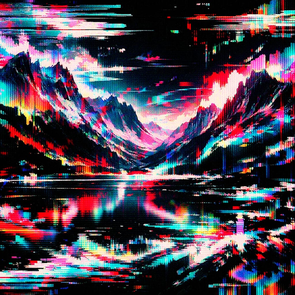 Prompt: "Extreme AI glitch art, a landscape shattered by digital corruption, heavy pixel sorting effects, vibrant RGB shift, data-bending artifacts, broken image compression aesthetic, neon colors bleeding into black void, chaotic data noise."